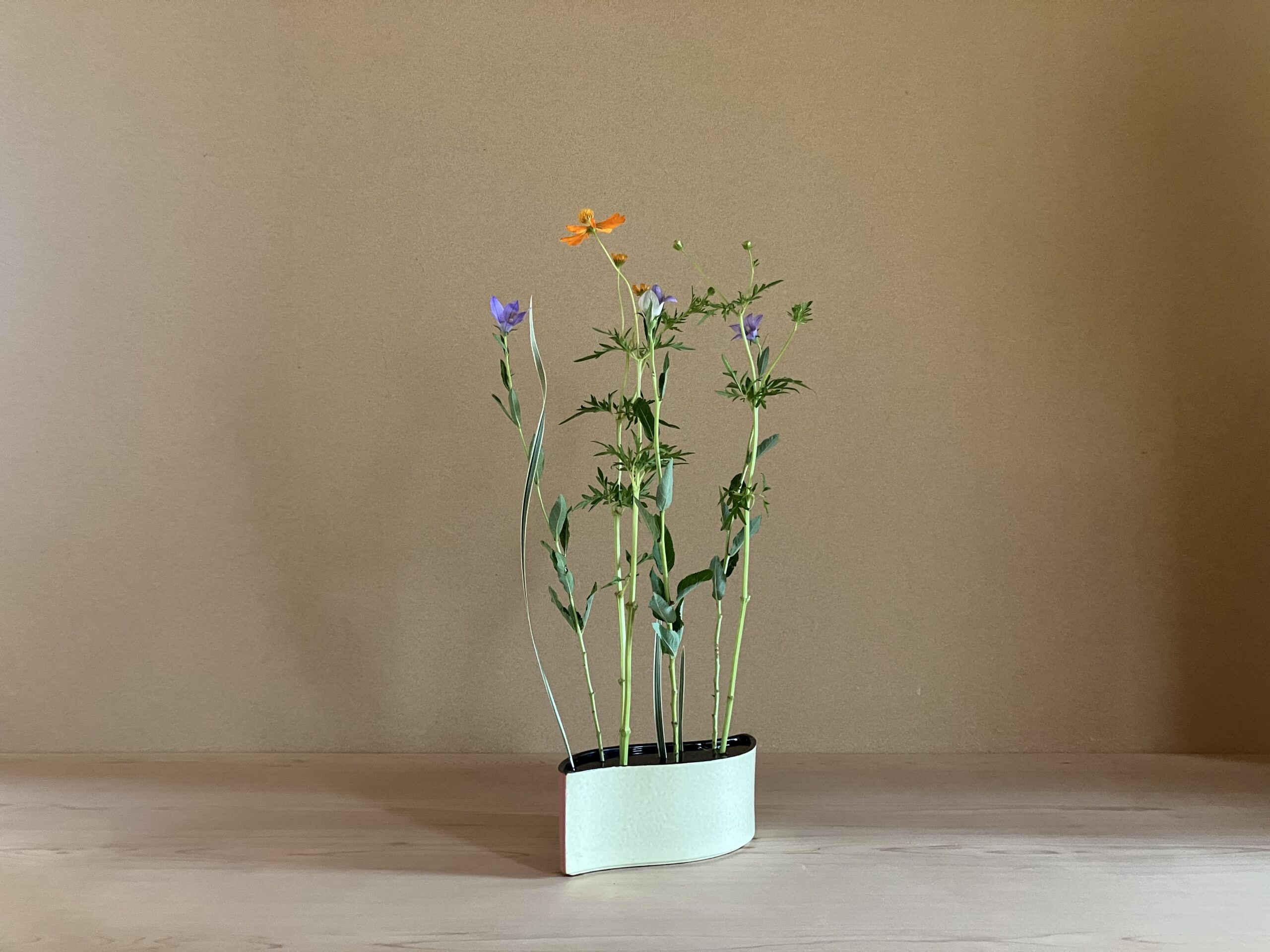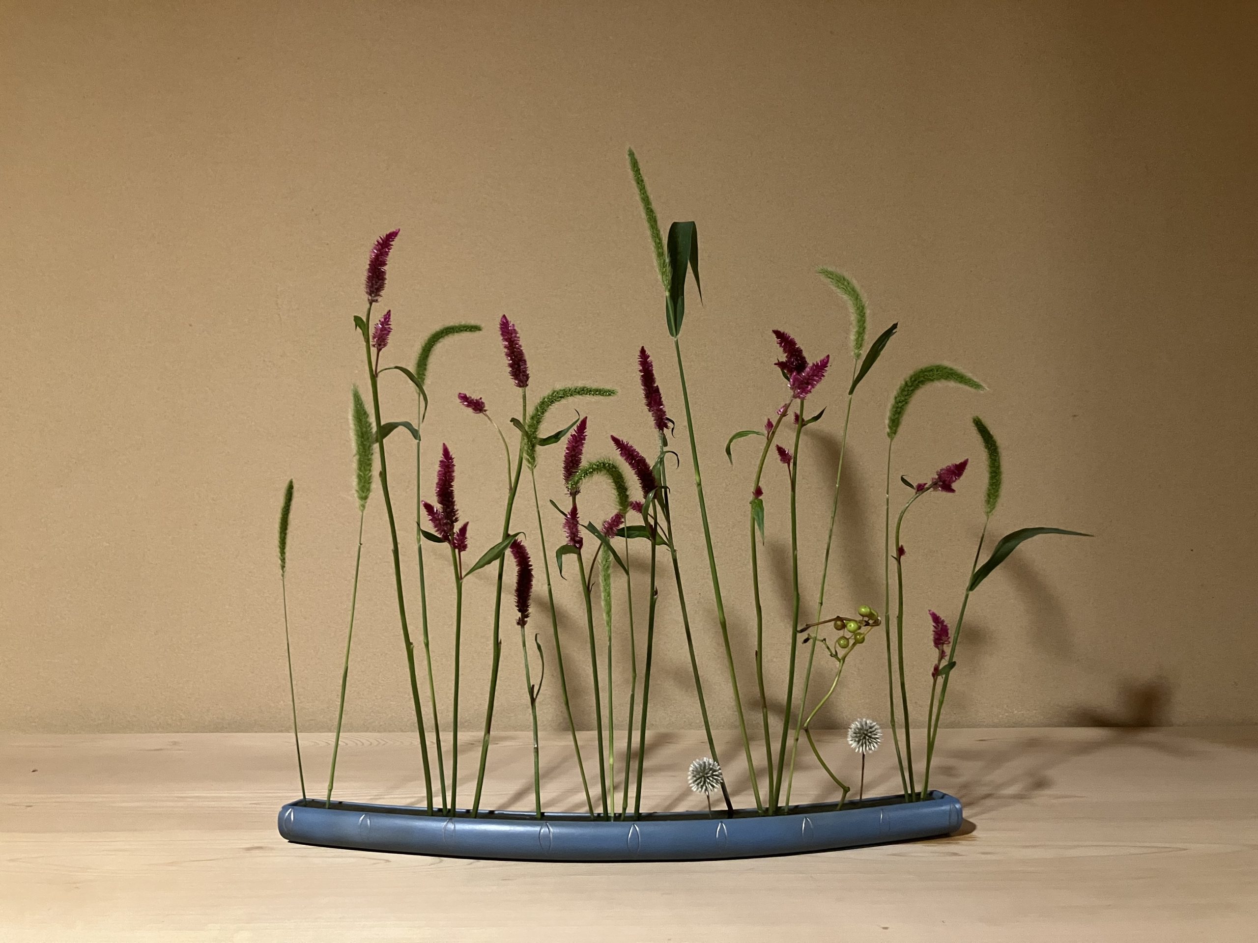 拝み真といういけ方でまさに葉が拝んでいるような形に生けます