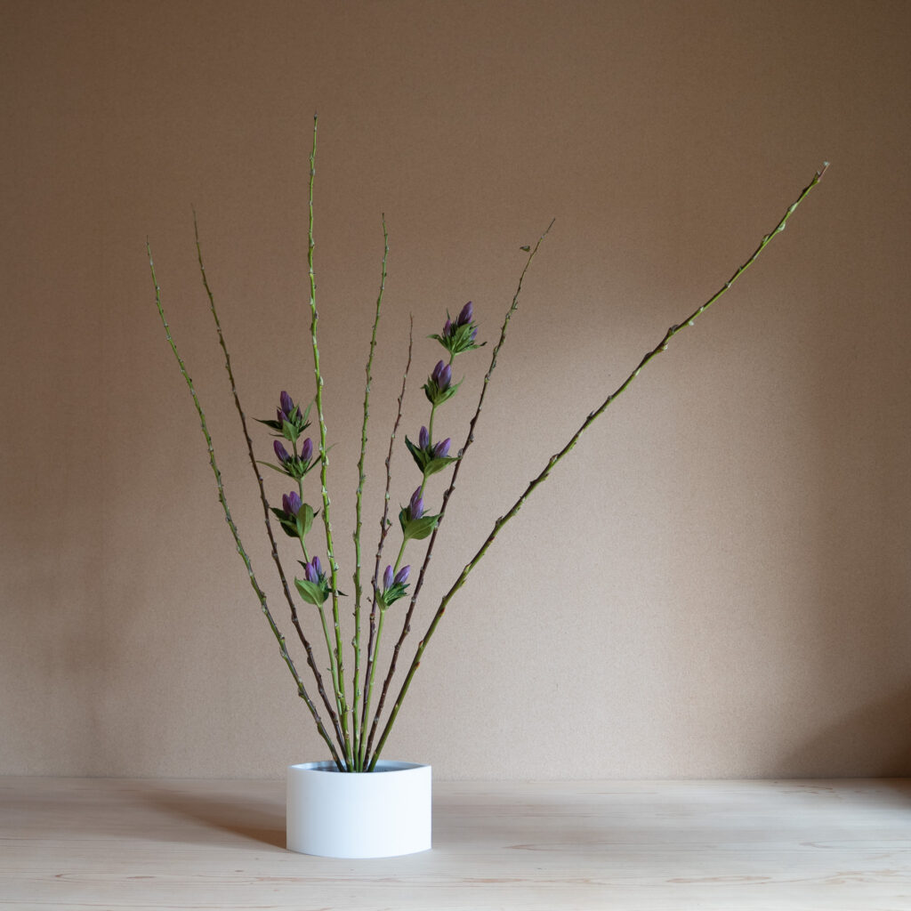 我々は植物を見て、単に色や形などの見た目の美しさだけに感動しているのではありません。植物の命、生きている姿に心を動かされているのです。いけばなでは、そういう風に植物を捉えます。世界中に花を飾る文化はありますが、植物の生きている姿に注目をするのはいけばな独特の見方です。